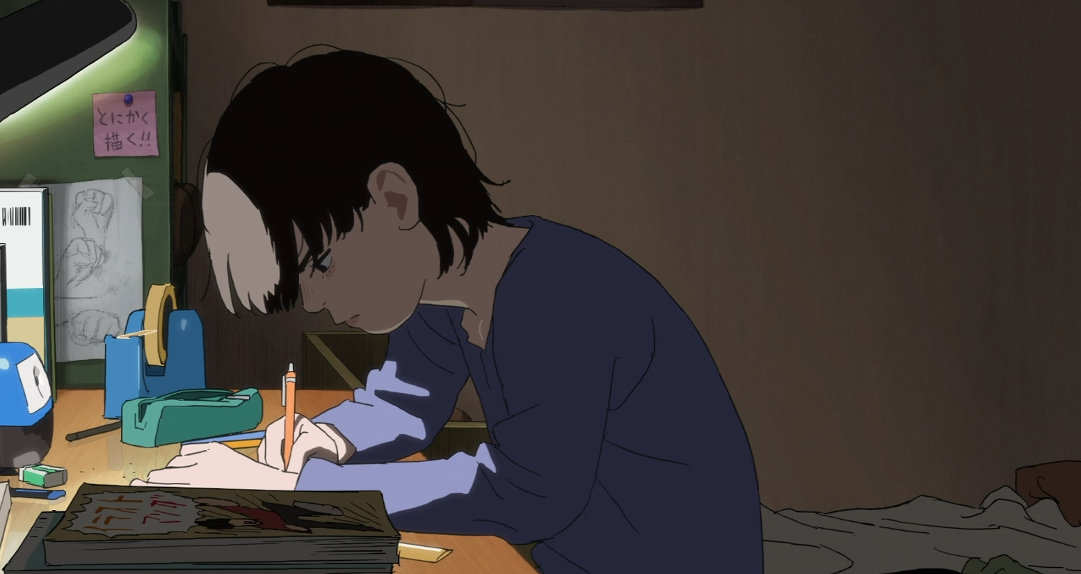 О фильме: У девочки по имени Фудзино настоящий дар к созданию манги. Она учится в 4 классе самой обыкновенной школы, а все свободное время уделяет любимому занятию. Героиня мечтает о том, что когда вырастет, станет популярным мангакой. Учителя в курсе того, что Фудзино великолепно рисует, а поэтому часто просят её нарисовать для школьной газеты. Девочка всегда соглашается и создает потрясающие шедевры, от которых одноклассники и учителя просто в восторге. Во время очередной большой перемены к героине подошла учительница. Она рассказала про Кёмото, сверстницу Фудзино, которая уже несколько месяцев не хочет ходить в школу. Все что делает девочка, это сидит за письменным столом у себя в комнате и усердно творит новую мангу. Учитывая что у них общие интересы, учительница просит Фудзино попробовать помочь Кёмото вернуться к нормальной жизни и продолжить обучение в школе.